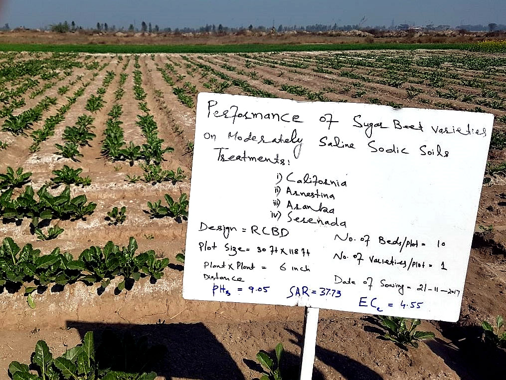 With reference to worthy Secretary Agriculture directions to immediately start studies on performance of Sugar beet varieties under saline sodic soils at Soil Salinity Research Institute (SSRI), Pindi Bhattian, Sugarcane Research Institute, AARI, Faisalabad and Sugarcane Research & Development Board SRDB. A meeting was organized by SRDB coordination and support to formulate future line of action for conduct of the trials. Sugar beet trails were started on 24 November, 2017 and field visit was conducted on 06 February, 2018. Following were participants of the field visit: