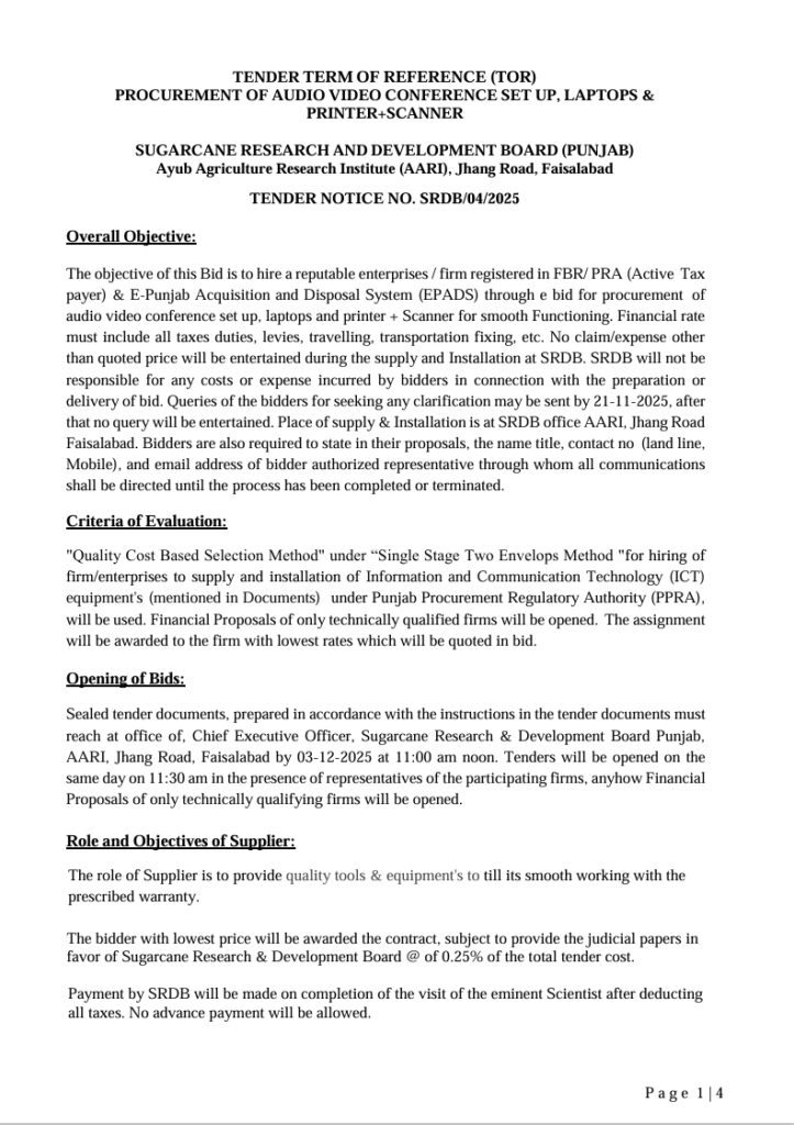 Tender TORs for Procurement of Audio Video Conference Set Up. 12/04/2025